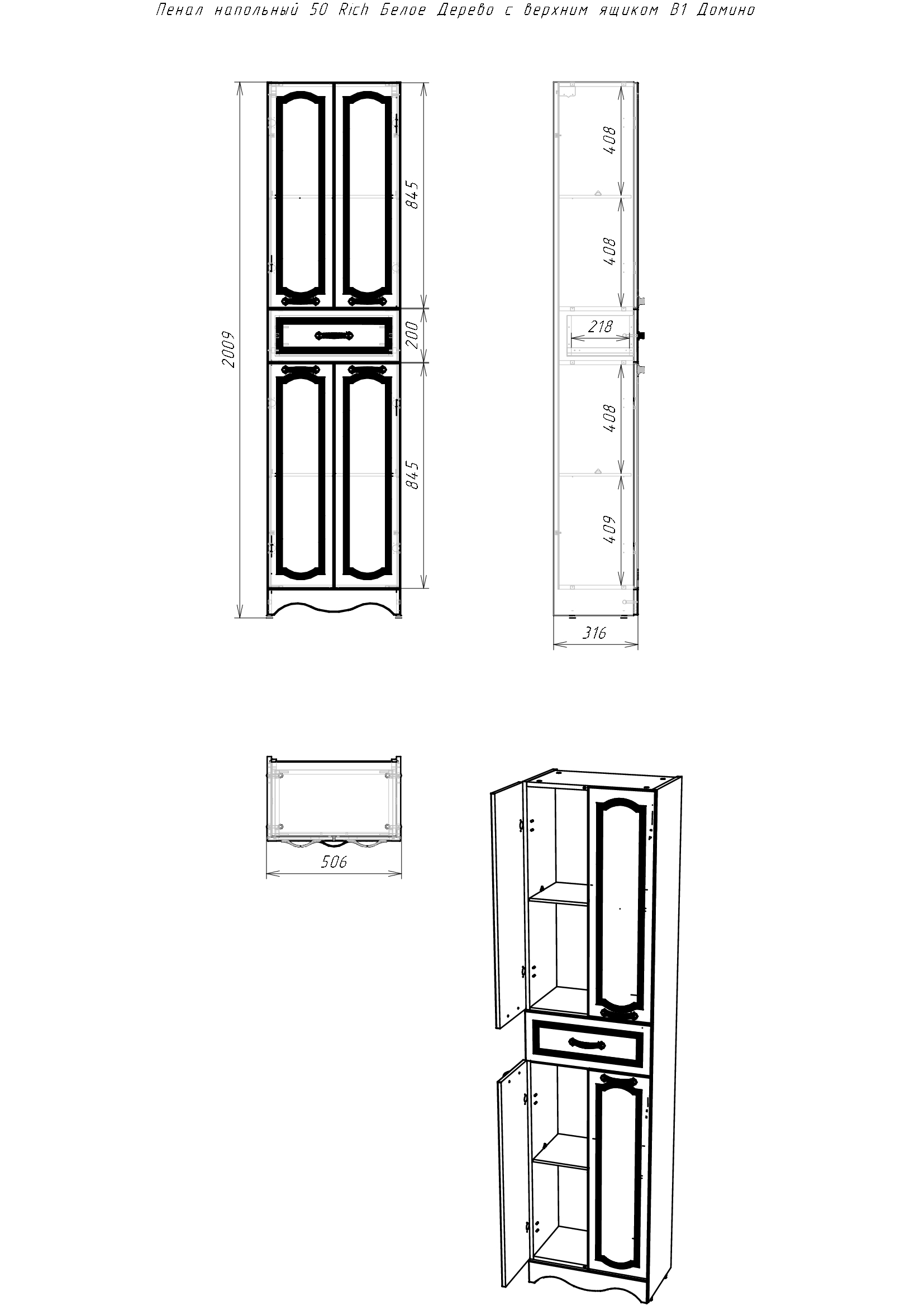 Комплект мебели для ванной комнаты RICH выполнен в двух цветах: Белое Дерево и Венге и дополнен изящной хромированной арматурой в классическом стиле. В серию входит: зеркало, тумба под умывальник и пенал. Размерный ряд зеркал и тумб порадует каждого, кто ищет и подбирает мебель по размеру ванной комнаты. Размеры зеркал и тумб: 65см, 80см, 105см, 120см. Пенал в единственном размере – 50см. Тумбы отличаются по размеру и наличию ящиков. Тумба напольная RICH 65 КЛАССИКА не имеет ящиков, две дверцы, внутри одна полка. Тумба напольная RICH 80 КЛАССИКА имеет два выдвижных ящика и три открывающиеся, с помощью дверей секции. Тумба напольная RICH 105 КЛАССИКА отличается двумя выдвижными ящиками и четырьмя секциями. В напольной тумбе RICH 120 КЛАССИКА три выдвижных ящика и два отсека с дверцами, по середине которых – полка. Напольный пенал выполнен также в двух цветах. Имеет один выдвижной ящик и два отсека – над ящиком и под ним, отсеки открываются с помощью дверей и разделены полкой. Корпус всей серии изготовлен из ЛДСП и текстурирован (Белое Дерево, Венге). Фасад из ЛМДФ и покрыт текстурированной пленкой ПВХ. Ножки у всех тумб подразумевают регулировку на 10мм. Для комфортного использования на петлях дверей установлены доводчики. Мебель поставляется в собранном виде. Комплект мебели RICH идеально подойдет для интерьера в классическом стиле и привнесет в помещение комфорт и ощущение гармонии, уюта.