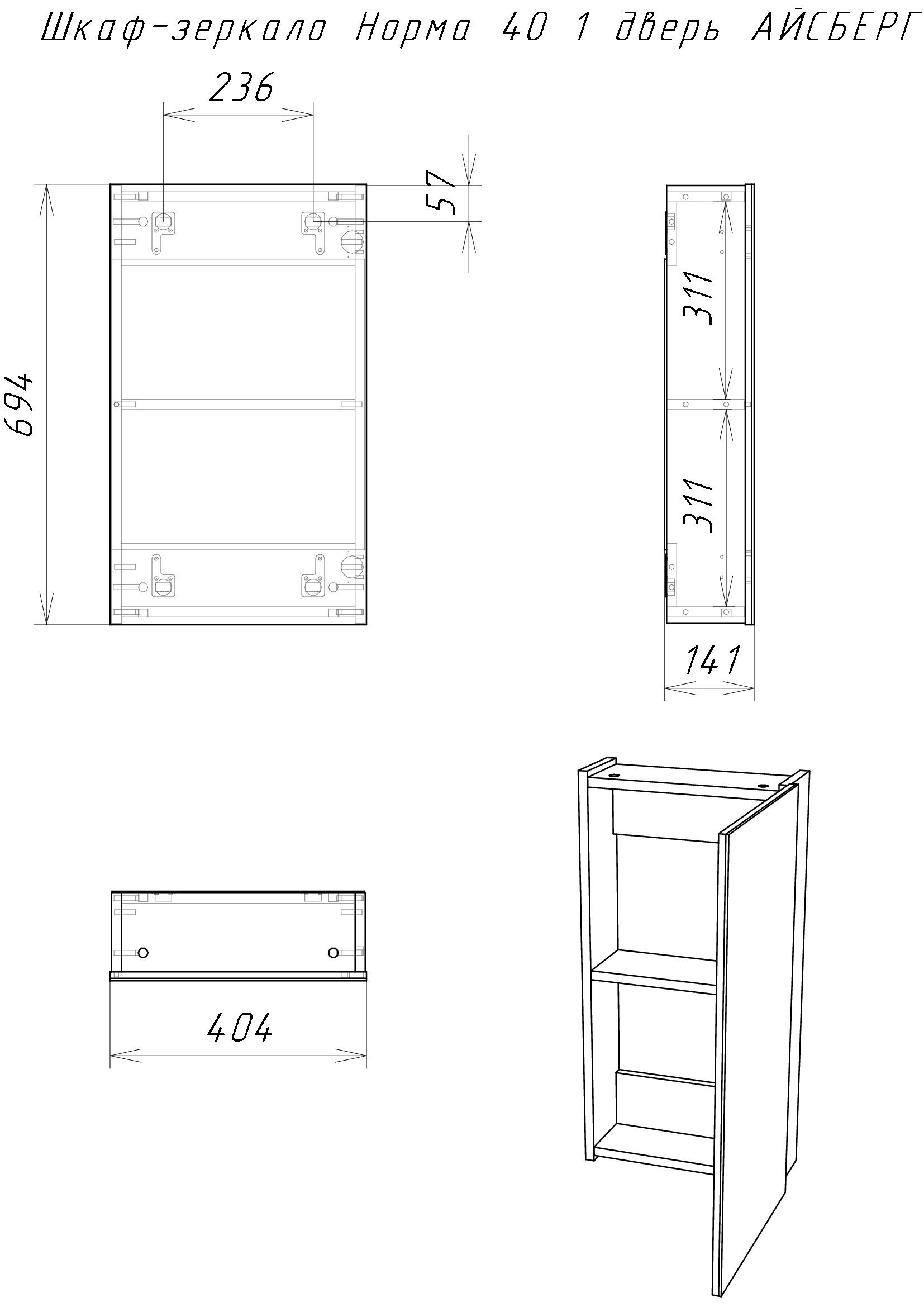 Мебель для ванных комнат от компании «Айсберг» полюбилась многим клиентам и украсила собой различные интерьеры. Шкаф-зеркало от 40 см до 80 см в ширину. В серию входит угловой шкаф, с одной/двумя створками, полки с одной/двух сторон. Тумбы под умывальник предусматривают удобную систему хранения, шириной также от 40 см до 80 см. Недавно серия пополнилась функциональным пеналом, шириной 60 см шириной. Корпус изготовлен из ЛДСП, фасад из ЛМДФ, обклеен пленкой ПВХ, что обеспечивает долговременную эксплуатацию. На петлях дверей установлены доводчики. У напольной мебели возможна регулировка ножек до 30 мм. Вся серия поставляется в собранном виде.