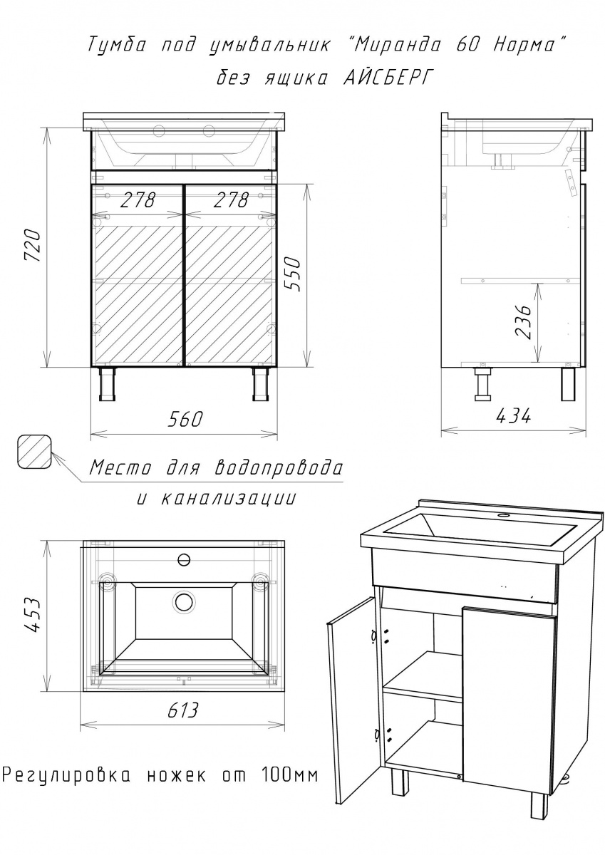 Мебель для ванных комнат от компании «Айсберг» полюбилась многим клиентам и украсила собой различные интерьеры. Шкаф-зеркало от 40 см до 80 см в ширину. В серию входит угловой шкаф, с одной/двумя створками, полки с одной/двух сторон. Тумбы под умывальник предусматривают удобную систему хранения, шириной также от 40 см до 80 см. Недавно серия пополнилась функциональным пеналом, шириной 60 см шириной. Корпус изготовлен из ЛДСП, фасад из ЛМДФ, обклеен пленкой ПВХ, что обеспечивает долговременную эксплуатацию. На петлях дверей установлены доводчики. У напольной мебели возможна регулировка ножек до 30 мм. Вся серия поставляется в собранном виде.