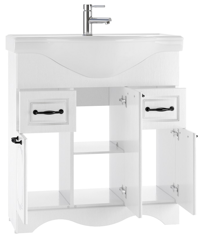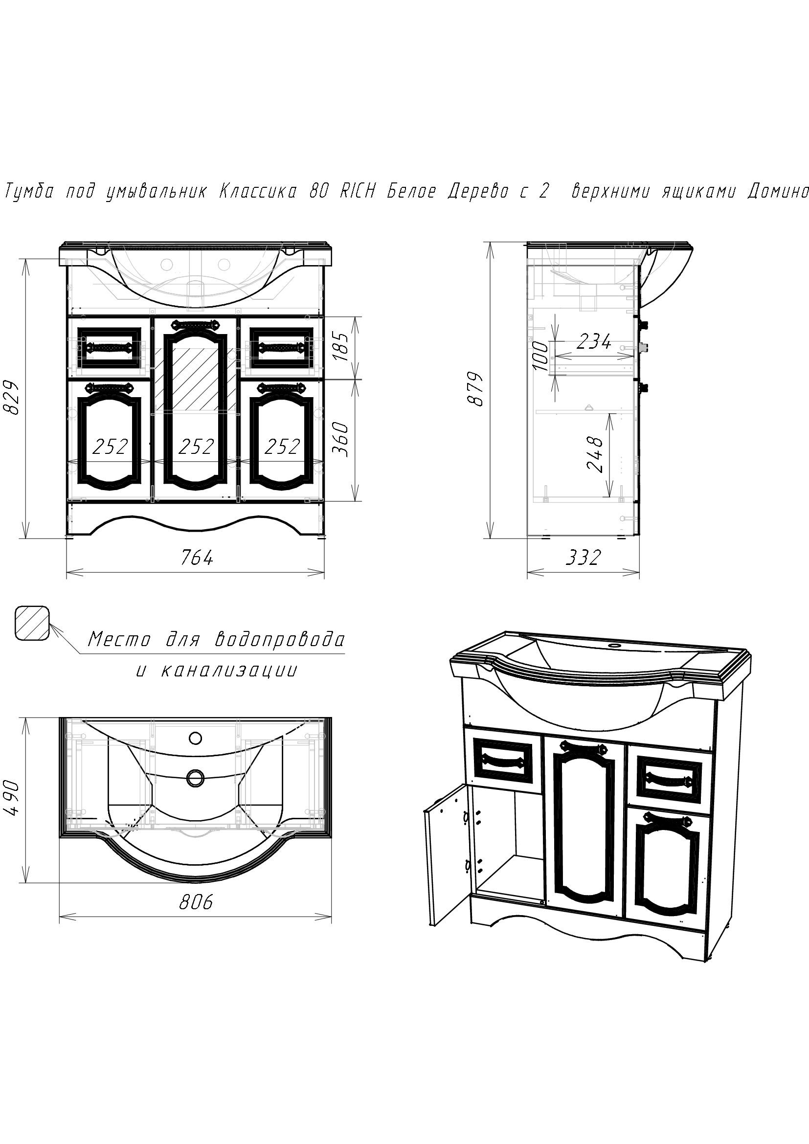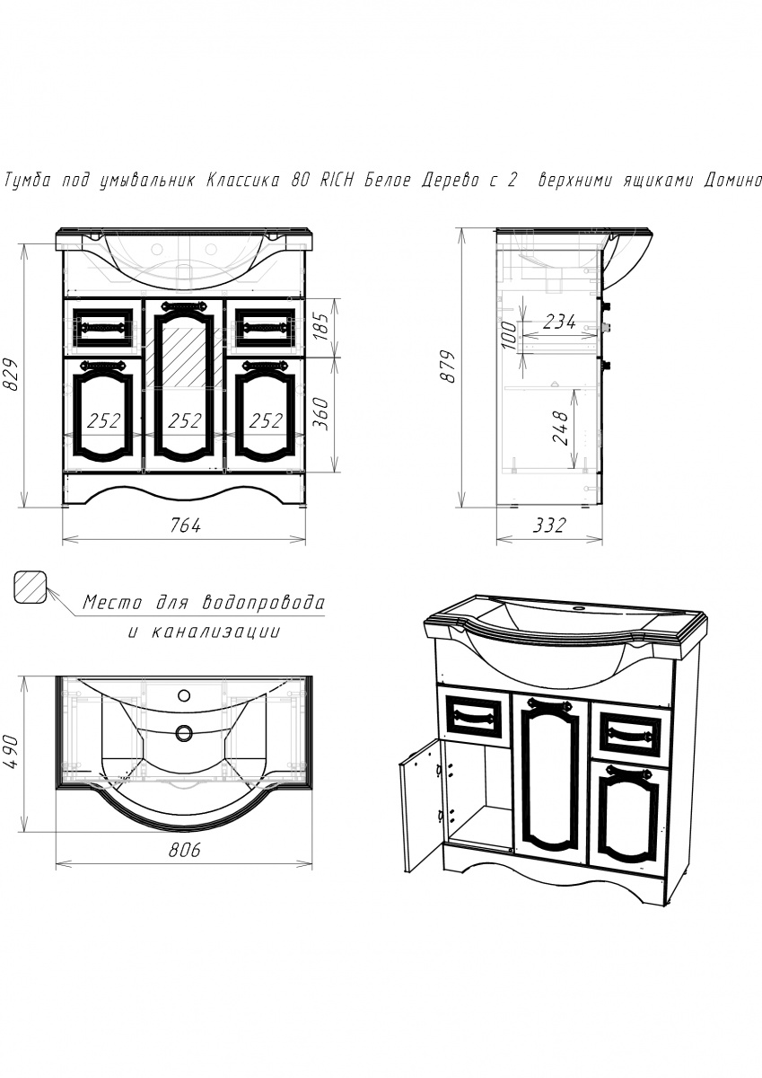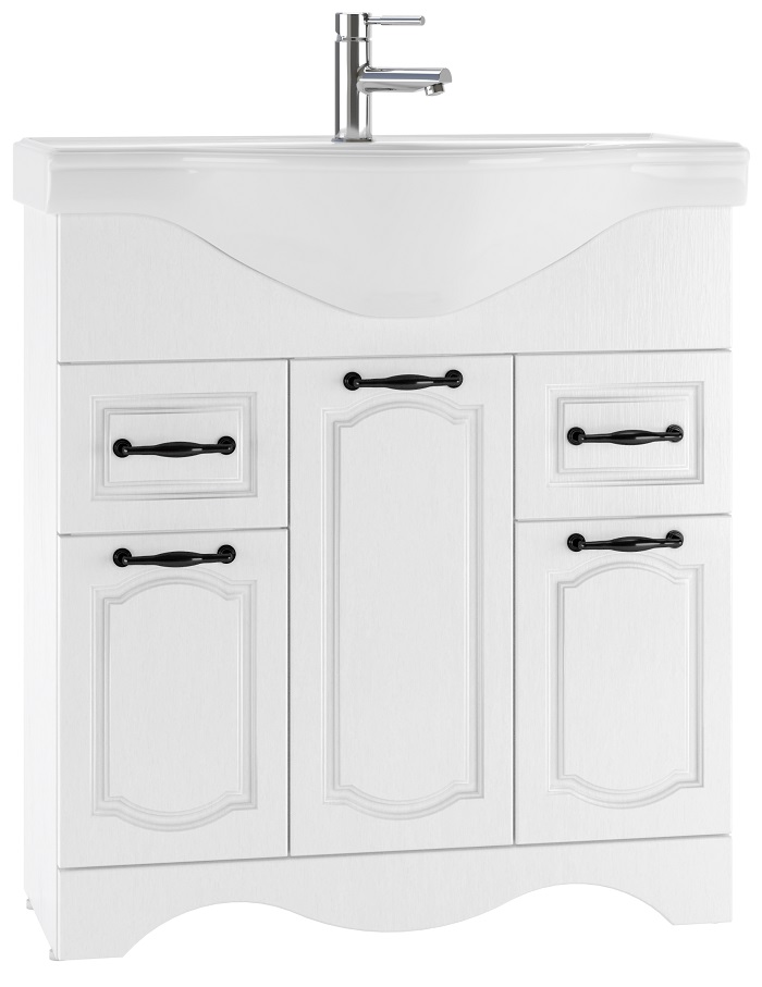 Комплект мебели для ванной комнаты RICH выполнен в двух цветах: Белое Дерево и Венге и дополнен изящной хромированной арматурой в классическом стиле. В серию входит: зеркало, тумба под умывальник и пенал. Размерный ряд зеркал и тумб порадует каждого, кто ищет и подбирает мебель по размеру ванной комнаты. Размеры зеркал и тумб: 65см, 80см, 105см, 120см. Пенал в единственном размере – 50см. Тумбы отличаются по размеру и наличию ящиков. Тумба напольная RICH 65 КЛАССИКА не имеет ящиков, две дверцы, внутри одна полка. Тумба напольная RICH 80 КЛАССИКА имеет два выдвижных ящика и три открывающиеся, с помощью дверей секции. Тумба напольная RICH 105 КЛАССИКА отличается двумя выдвижными ящиками и четырьмя секциями. В напольной тумбе RICH 120 КЛАССИКА три выдвижных ящика и два отсека с дверцами, по середине которых – полка. Напольный пенал выполнен также в двух цветах. Имеет один выдвижной ящик и два отсека – над ящиком и под ним, отсеки открываются с помощью дверей и разделены полкой. Корпус всей серии изготовлен из ЛДСП и текстурирован (Белое Дерево, Венге). Фасад из ЛМДФ и покрыт текстурированной пленкой ПВХ. Ножки у всех тумб подразумевают регулировку на 10мм. Для комфортного использования на петлях дверей установлены доводчики. Мебель поставляется в собранном виде. Комплект мебели RICH идеально подойдет для интерьера в классическом стиле и привнесет в помещение комфорт и ощущение гармонии, уюта.