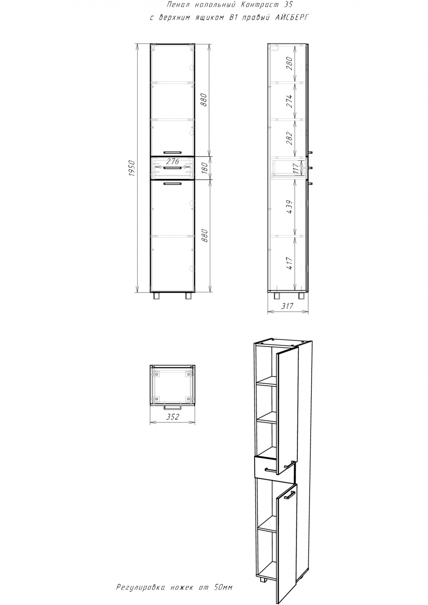 Пенал напольный Контраст 35 с верхним ящиком В1 правый АЙСБЕРГ– это функциональное решение для хранения в ванной комнате. Он станет незаменимым предметом мебели для ванной, обеспечивая порядок и удобный доступ к необходимым вещам. Мебель представлена в безупречном белом цвете с глянцевым покрытием, что добавляет элегантности и стиля.