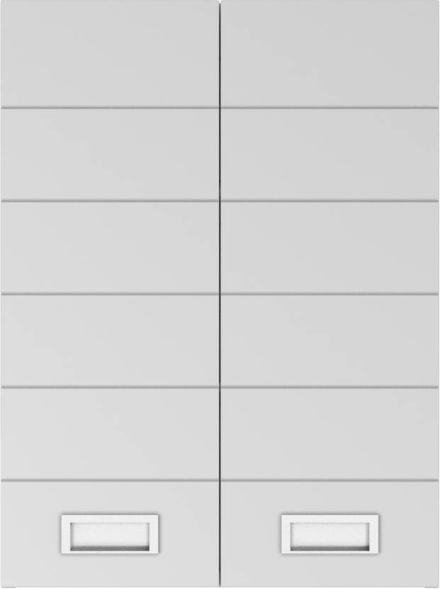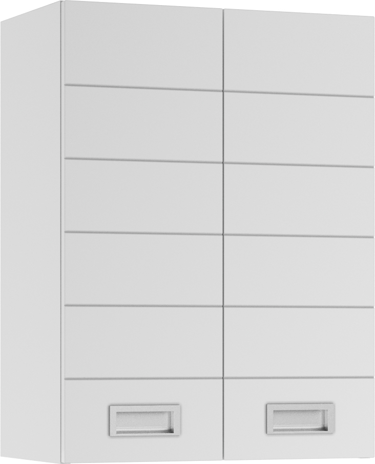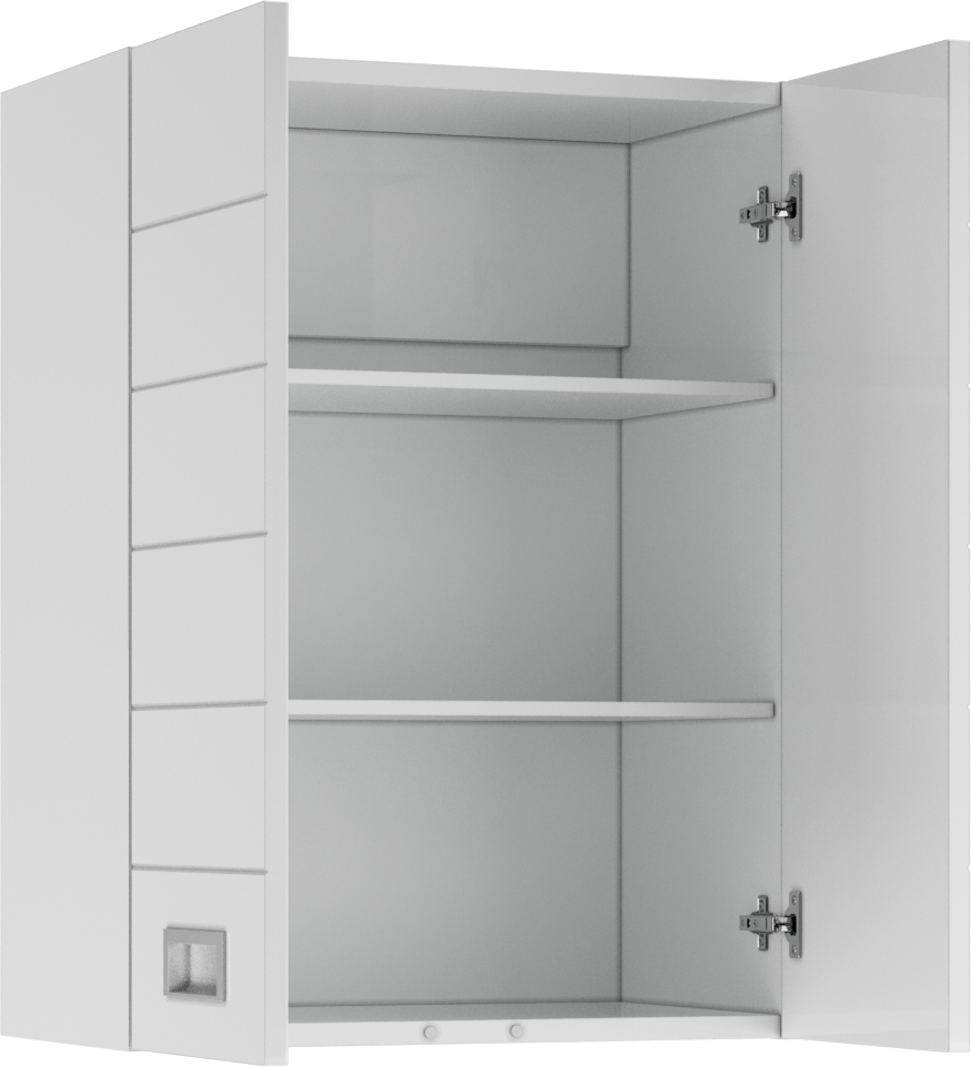 Мебель для навесного шкафа изготовлена из ЛДСП, что обеспечивает долговечность. Фасад выполнен из МДФ, покрытого эмалью, что гарантирует первоклассный вид и простоту в уходе. Гладкая поверхность легко очищается от загрязнений.