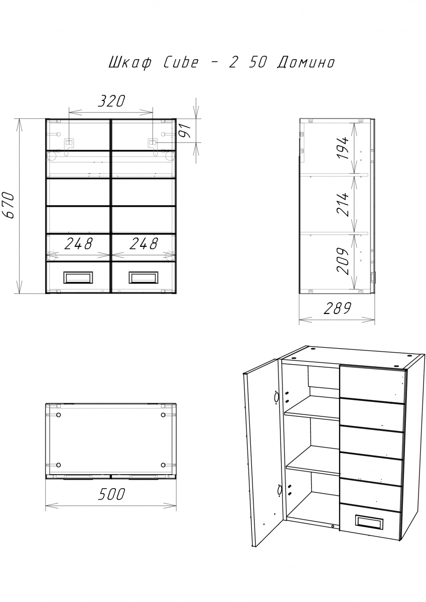 Шкаф Cube - 2 50 Домино идеально подходит для ванной комнаты. Он станет находкой для хранения необходимых мелочей. Данная мебель представляет собой настенный шкаф с распашными дверцами. Белый цвет добавляет светлоты и уют в интерьер.