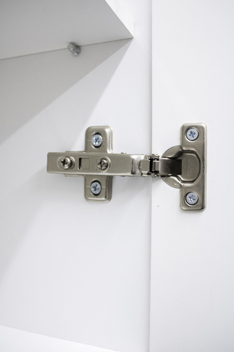 Внутри шкафа расположены полки. Они помогут организовать пространство и упростят процесс поиска нужных вещиц. Особое внимание стоит уделить петлям с доводчиком. Они обеспечивают плавное закрывание двери, добавляя комфорт при использовании.