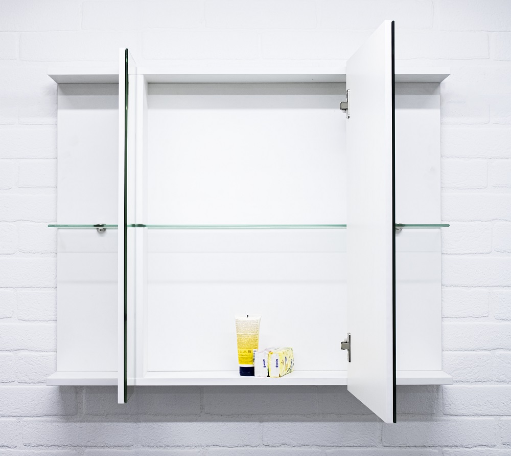 Зеркало в ванную создаст эффект пространства и добавит света. Этот шкаф в ванную выполнен из качественных материалов: ЛДСП, зеркало и стекло. Они обеспечивают надежность и долговечность мебели для ванной комнаты. Зеркальное покрытие подчеркивает современный дизайн шкафа.