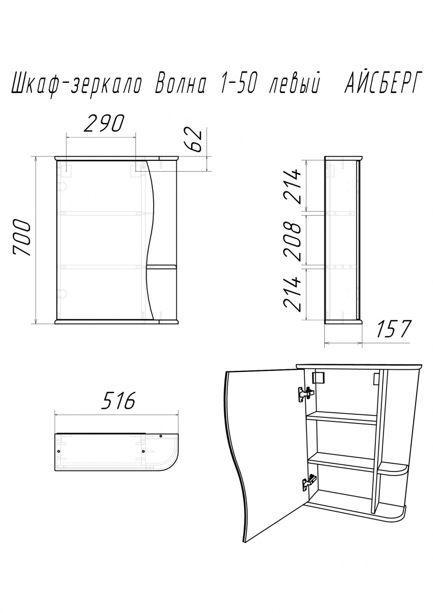 Шкаф-зеркало Волна 1-50 левый АЙСБЕРГ предназначен для ванной комнаты. Он идеально подходит для людей, которым нужно оптимальное хранение в ванной. Шкаф с зеркалом сочетает в себе функциональность и стиль. Зеркальный шкаф станет отличным дополнением вашей мебели для ванной комнаты.