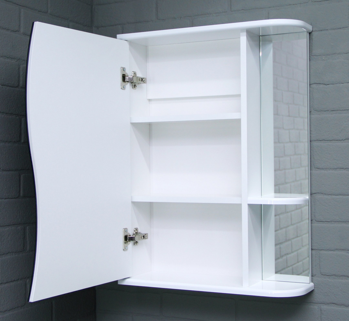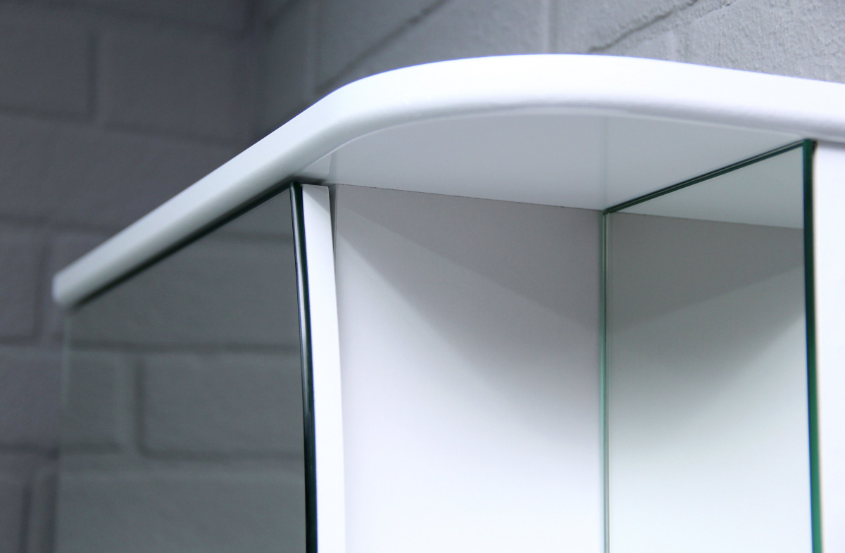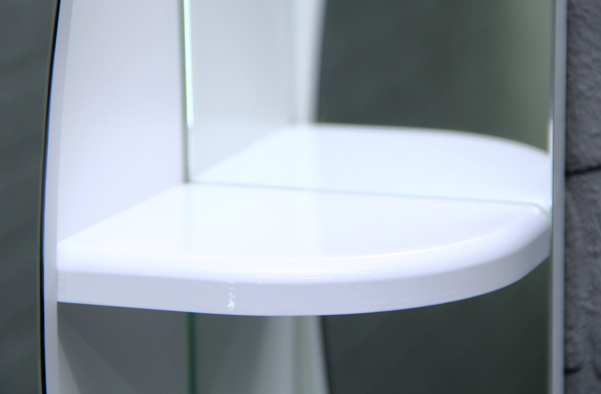 Зеркало на дверце шкафа не только украшает его, но и создаёт дополнительную удобную поверхность для повседневного использования. Продукт предоставляет возможность иметь зеркало с полками, незаменимое в любой ванной комнате.