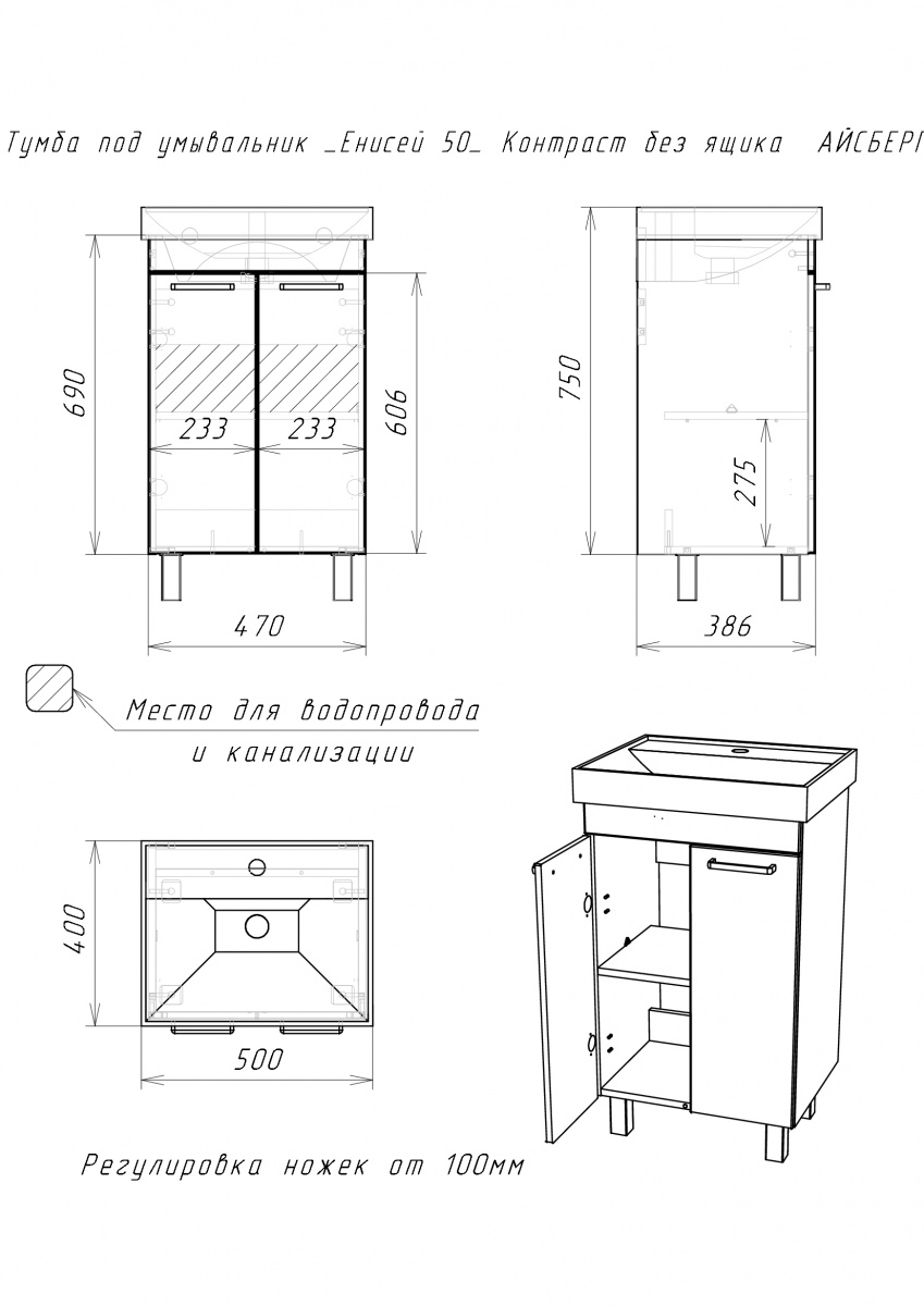 11Сопутств. товары 1 (Арт. товара, группы; метка*) | Умывальник мебельный "Енисей 50" Универсал | |