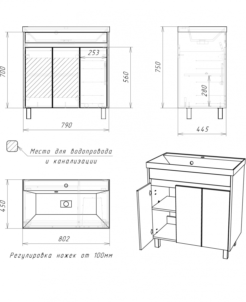 | Комплектация | Тумба, комплект фурнитуры, паспорт | |