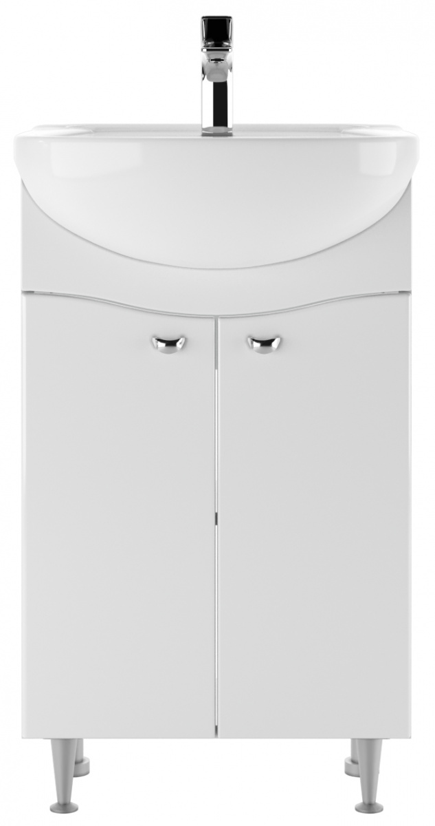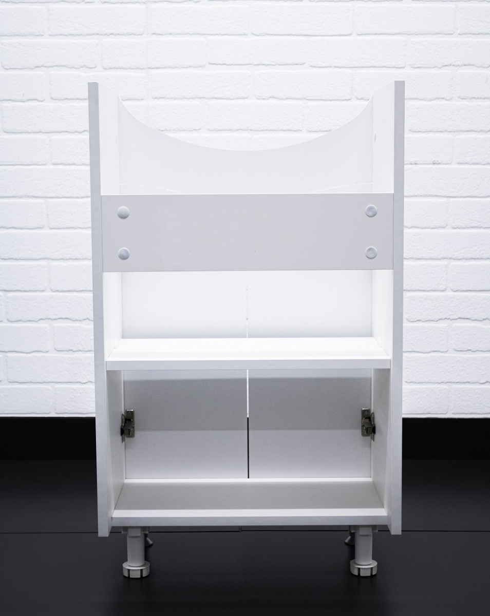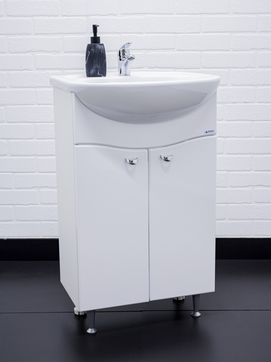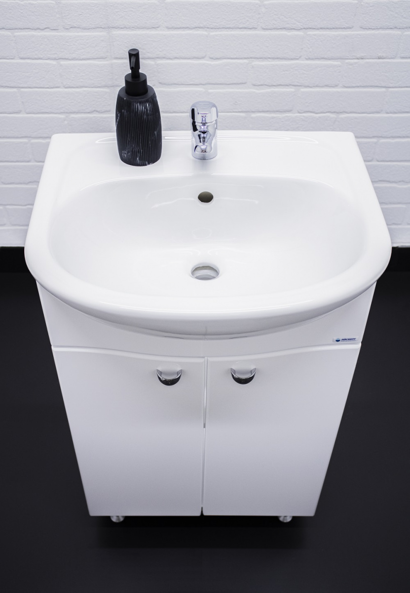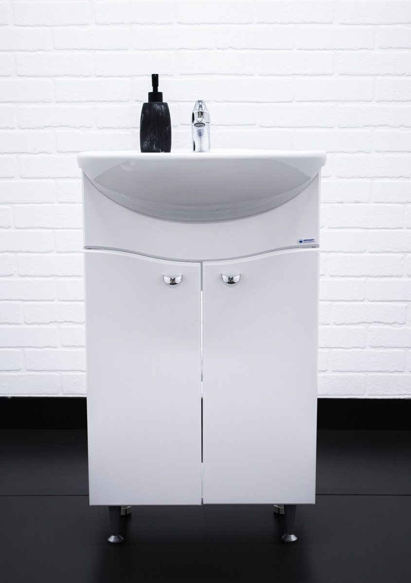 Тумба предназначена для установки под раковину в ванную, создавая идеальное решение для хранения полезных вещей. Распашные дверки с доводчиками открываются плавно, что добавляет удобства в использовании. Глянцевое покрытие придает мебели стильный вид и облегчает уход за ней.