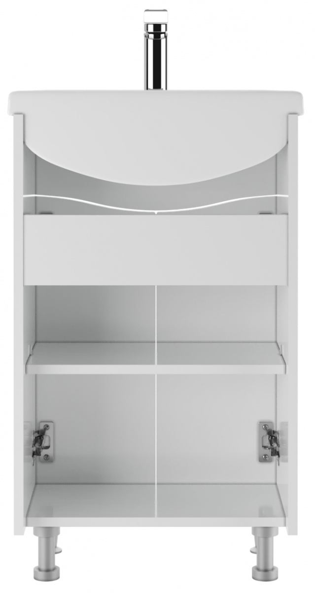 Тумба под умывальник "Уют 50 Волна" без ящика АЙСБЕРГ станет отличным дополнением для вашей ванной комнаты. Тумбочка отлично впишется в любое пространство. Напольная конструкция обеспечивает стабильность. Модель выполнена из ЛДСП и МДФ, что гарантирует долговечность. Плёнка ПВХ защищает материал от влаги.