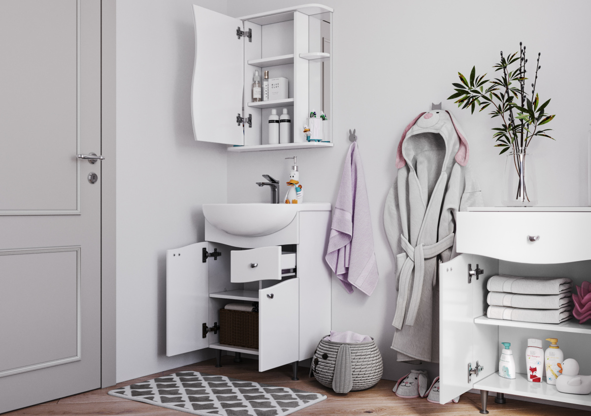 Предусмотренная полка внутри способствует грамотной организации пространства — все необходимые средства по уходу за собой или аксессуары будут всегда под рукой. Благодаря компактным размерам такая мебель идеально подойдет даже для небольших помещений, максимально освобождая полезную площадь.