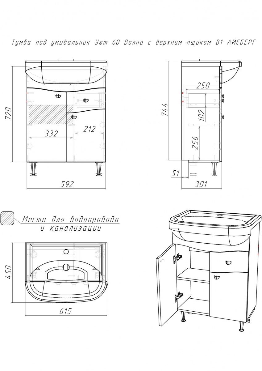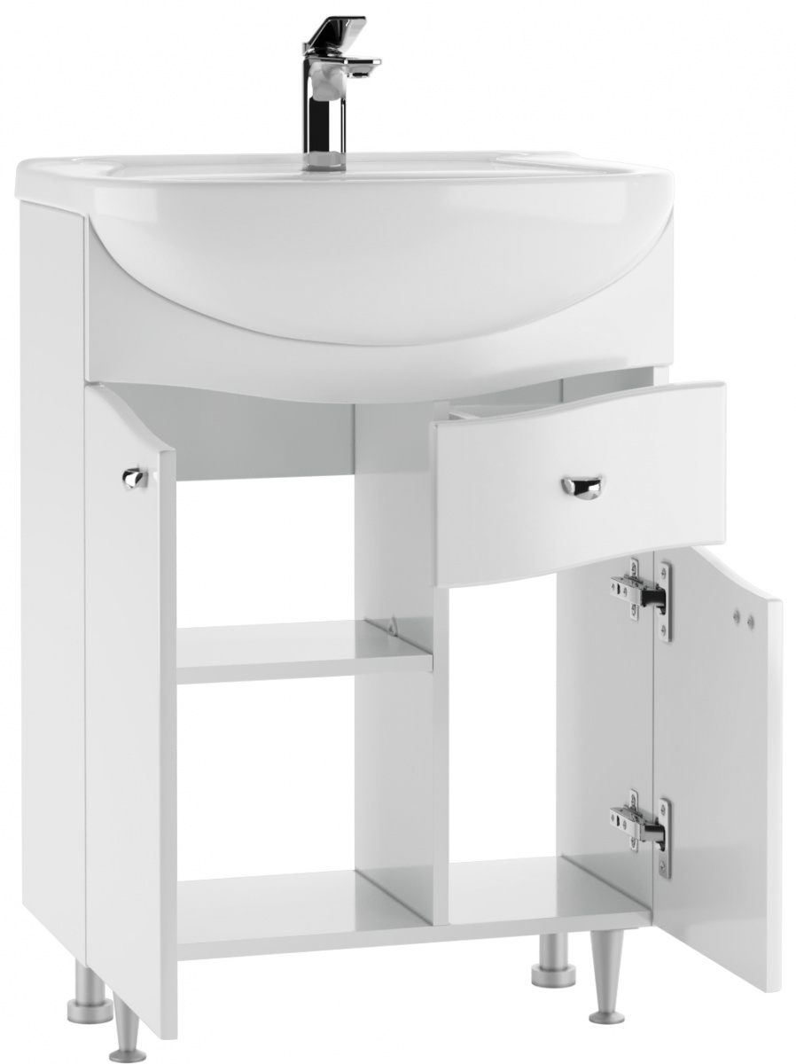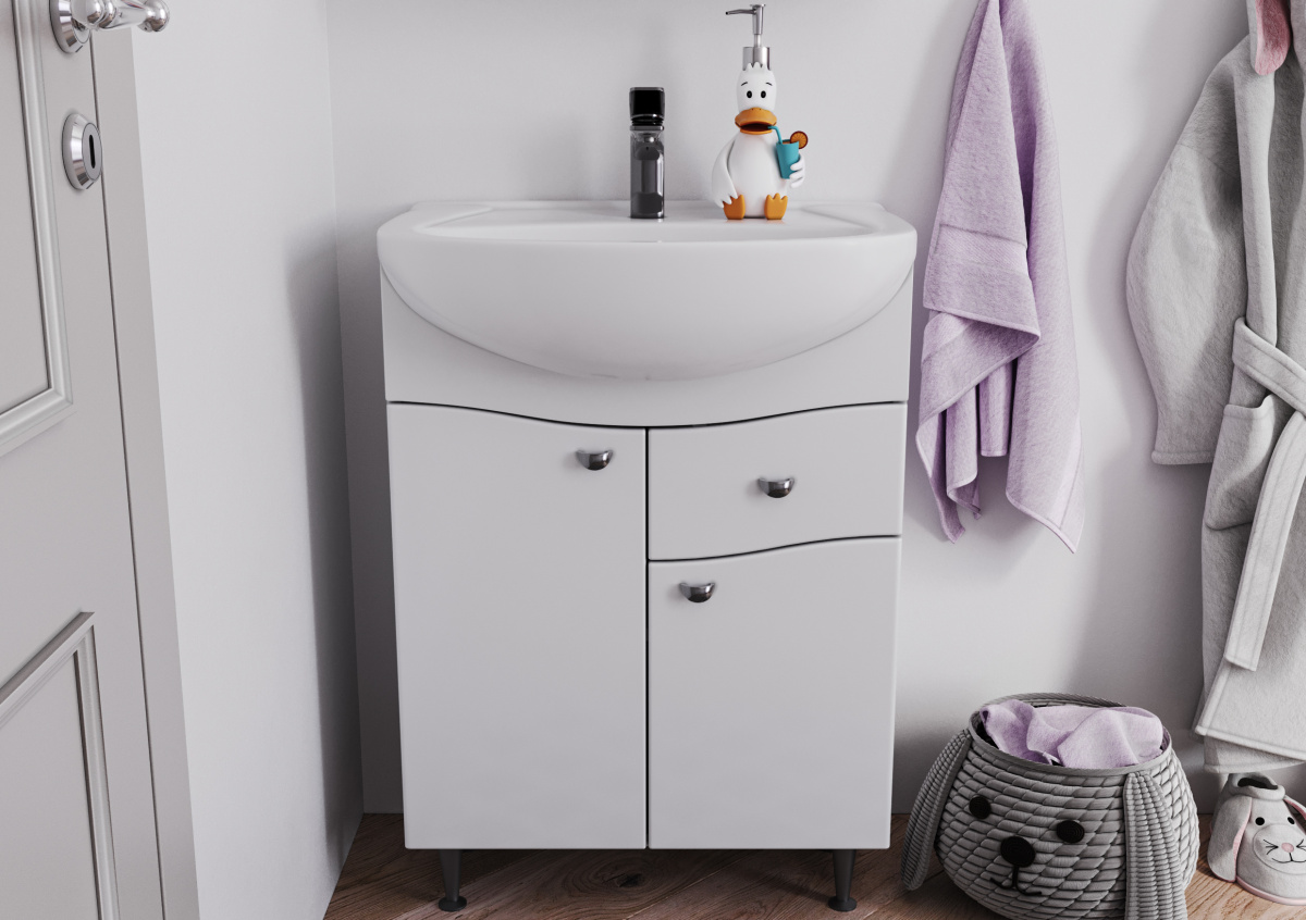Тумба под умывальник "Уют 60 Волна" с верхним ящиком В1 АЙСБЕРГ— это практичное решение для организованного и стильного пространства. Распашные дверки с доводчиками обеспечивают плавное закрывание, а их глянцевое покрытие добавляет изысканность интерьеру ванной комнаты. Полка под раковину и ящик помогут рационально использовать пространство, предоставляя дополнительное место для хранения бытовых мелочей.