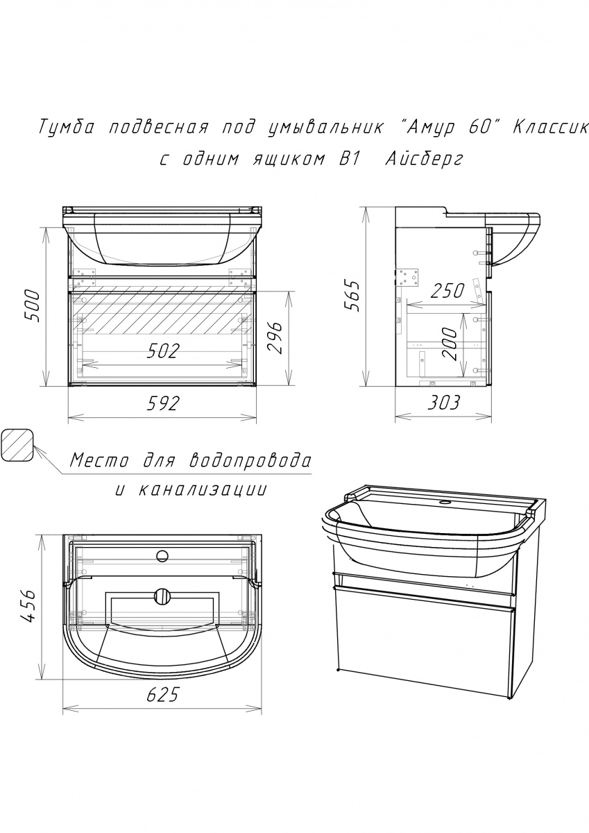 Тумба подвесная под умывальник "Амур 60" Классик с одним ящиком В1 Айсберг станет практичным решением для любой ванной комнаты. Эта мебель выполнена в белом цвете, что добавляет легкости и свежести в интерьер. Модель с одним ящиком удобна для хранения необходимых мелочей, оставляя пространство в чистоте и порядке.