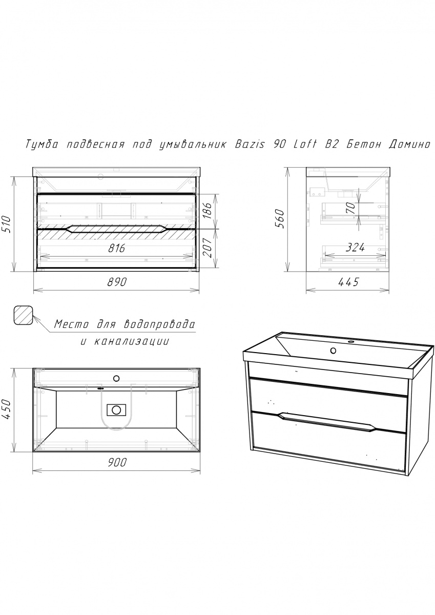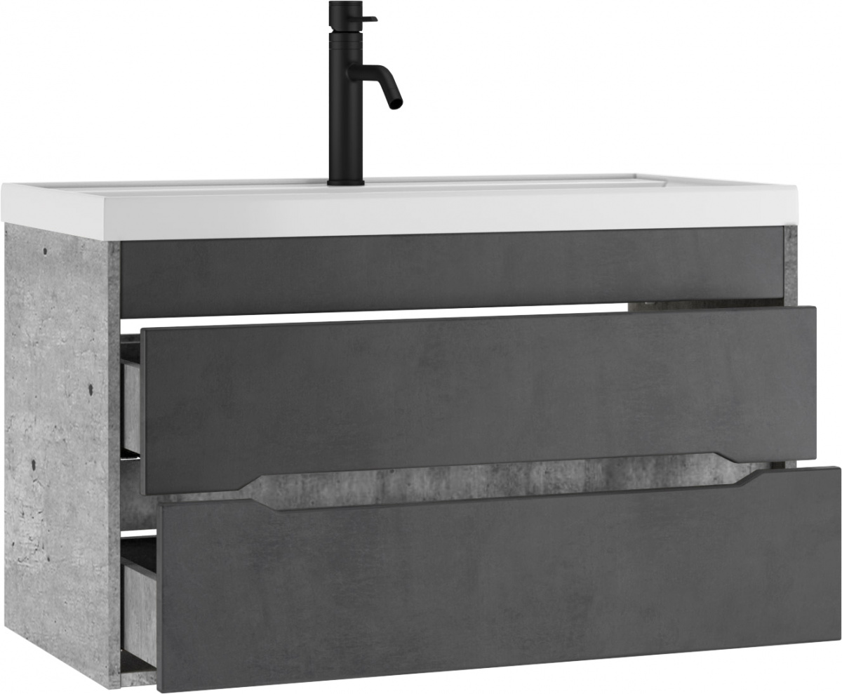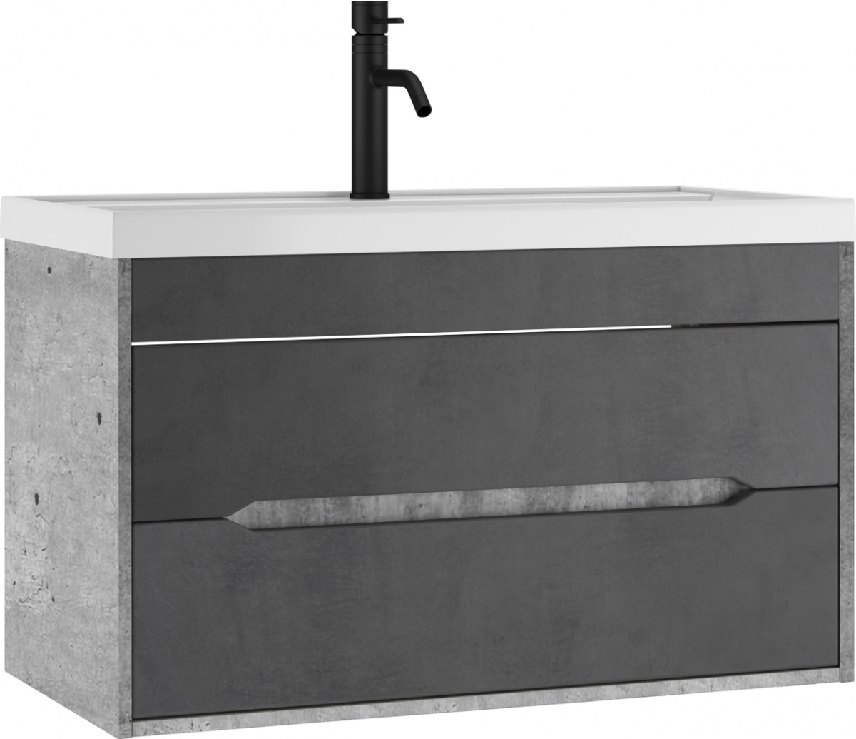 Тумба подвесная под умывальник "Bazis 90" Loft В2 Бетон Домино для ванной из коллекции Loft станет стильным и функциональным дополнением вашего интерьера. Изготовленная из ЛДСП и МДФ с покрытием пленкой ПВХ, она гарантирует долговечность и устойчивость к условиям высокой влажности. Цвет корпуса в оттенке Метрополитан Грей и темно-серый фасад, имитирующий бетон, подчеркнут современный стиль вашей ванной комнаты. Мебель для ванной комнаты должна быть не только эстетичной, но и практичной, что полностью относится к этому изделию.