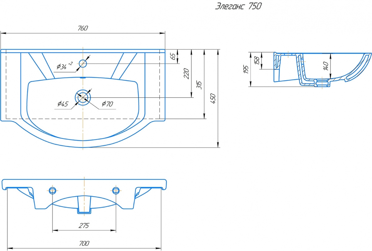 Умывальник мебельный "Элеганс 75" г. Киров