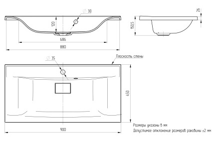 Этот вариант позволяет оптимально использовать пространство ванны. Установка мойки осуществляется сверху, что облегчает процесс установки и дальнейшего ухода за изделием. Благодаря простому уходу за поверхностью, вы сможете поддерживать идеальную чистоту.
