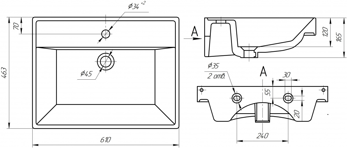 Высота, мм 165