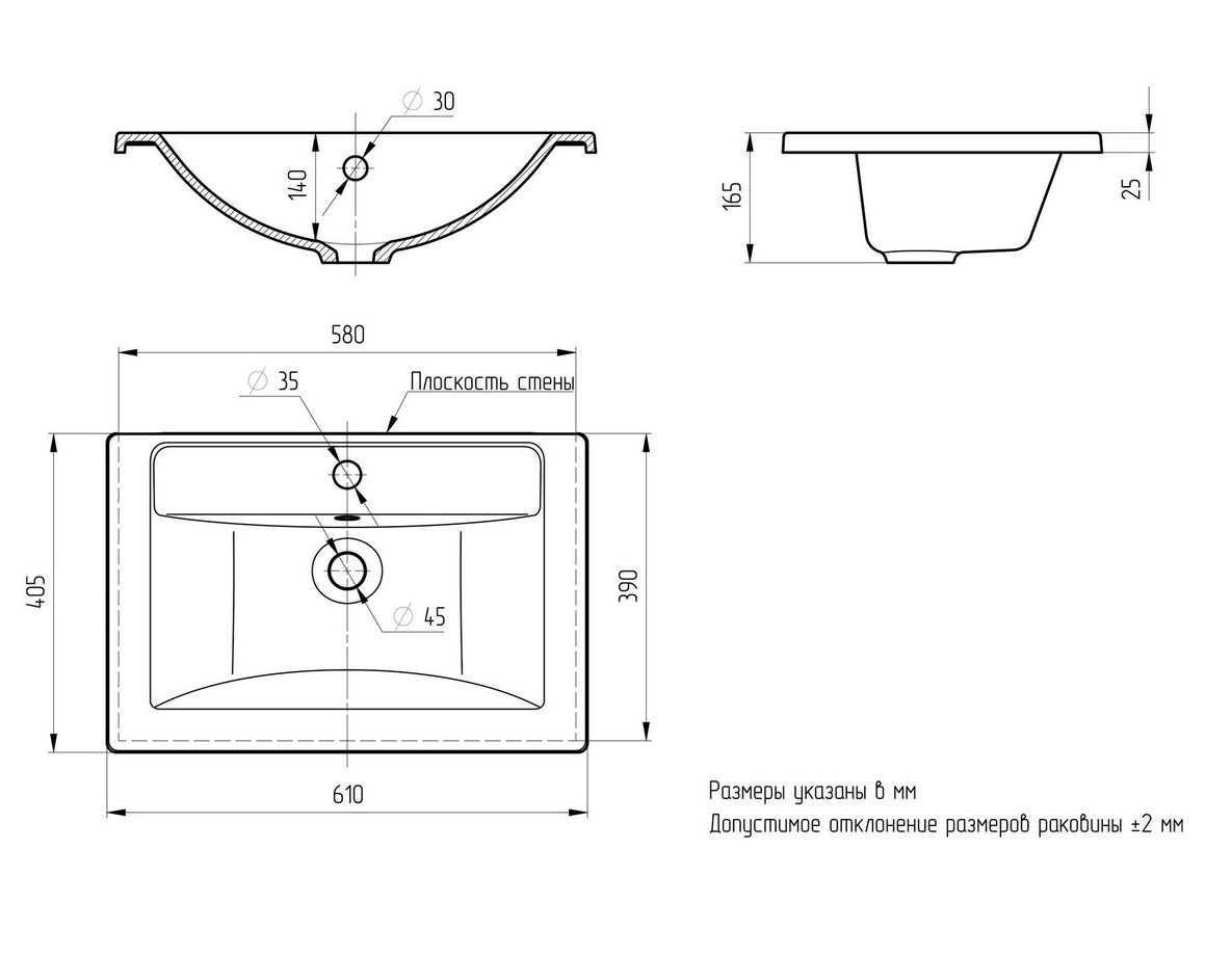 Комплектация Умывальник - 1шт.