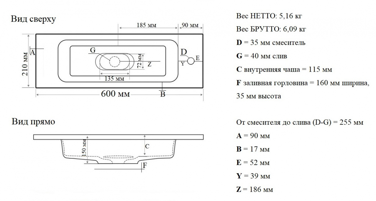 Комплектация Умывальник, декоративная накладка для слива